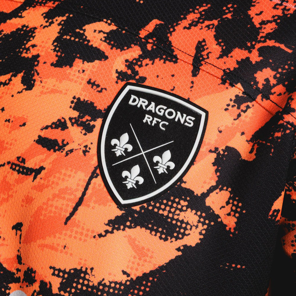 VX3 Dragons RFC 2025/26 Mens Third Rugby Shirt Orange brings bold energy to the pitch with its striking all-over graphic design. Made from lightweight, breathable fabric, it ensures comfort and performance whether you’re training, playing, or supporting from the stands. Featuring the Dragons RFC crest, sponsor logos, and VX3 branding, it’s the ultimate shirt for fans of the team.