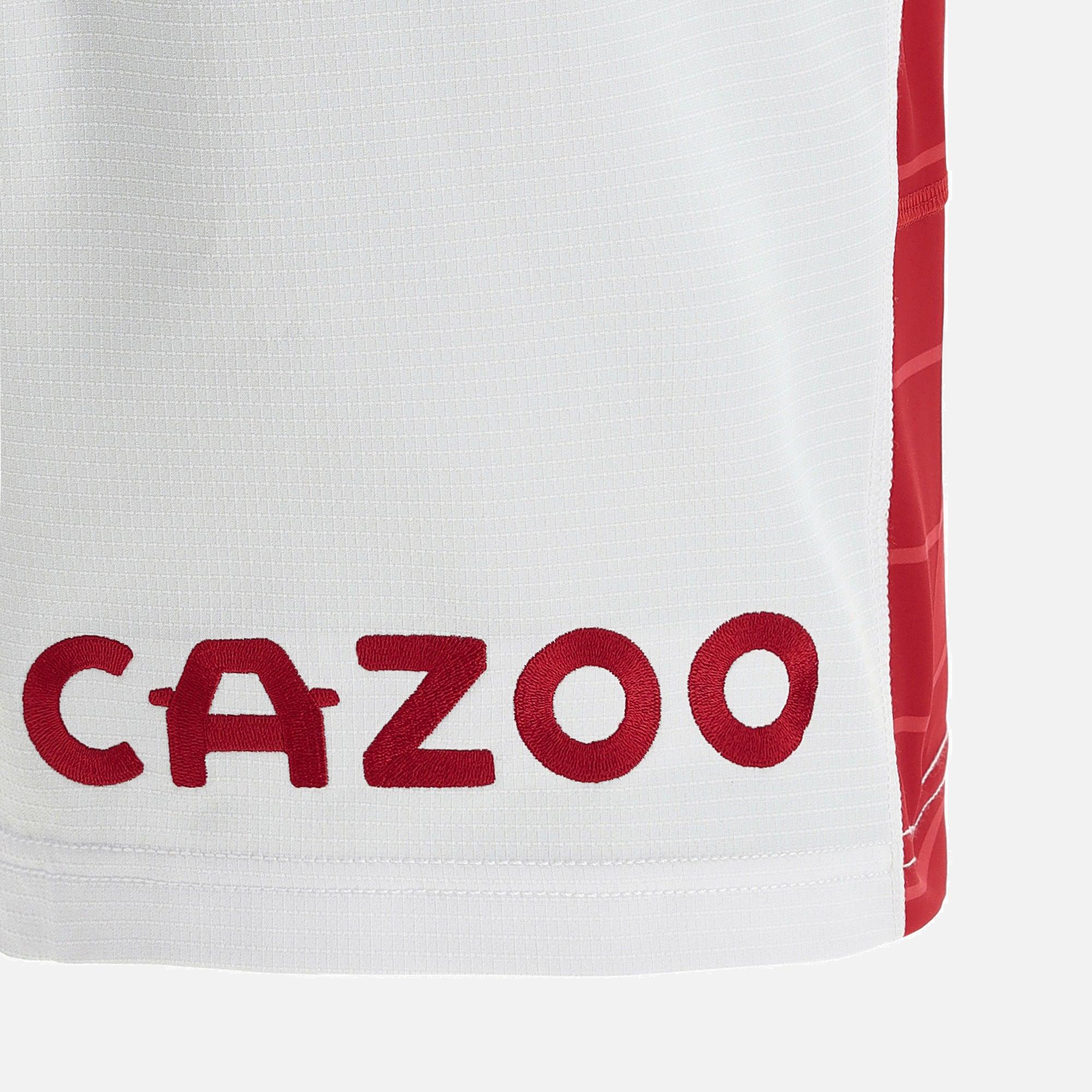 Official Home Match Shorts for the 2021 season. White shorts with red flanks, stretch panels and embroidered badges. OFFICIAL LICENSED PRODUCT | This official, certified product has been designed and made by Macron for and in close conjunction with the Club. It conforms to the strictest standards of authenticity and traceability in the supply chain.