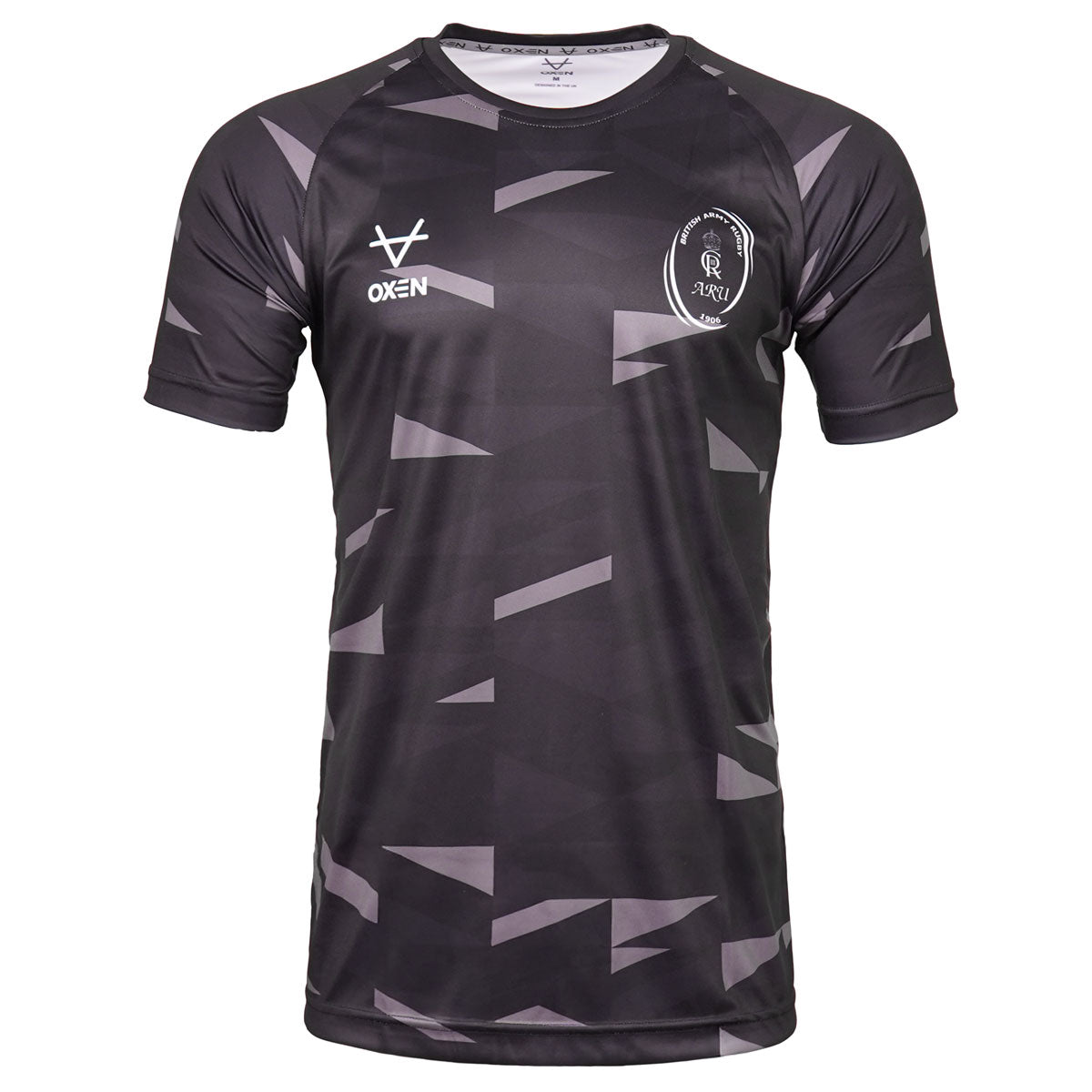The Oxen Army ARU 2025/26 Men’s Training T-Shirt Black combines performance and pride for serious training sessions. Made from lightweight, moisture-wicking fabric, it keeps you cool and comfortable while showcasing the official Army Rugby Union crest. Its geometric camouflage design adds a modern edge to this high-performance piece.