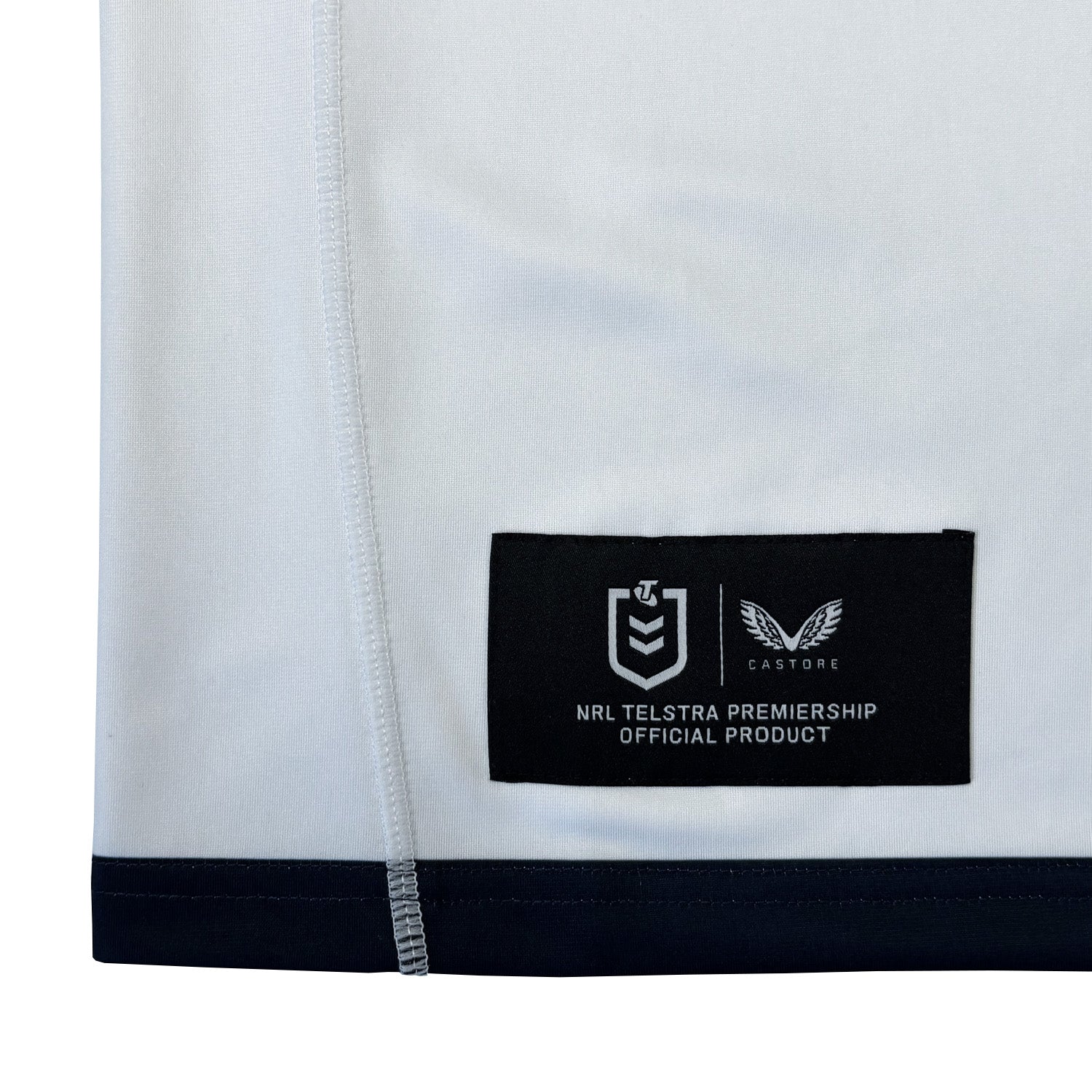 The Castore Sydney Roosters Men’s Away Rugby Shirt White showcases the club’s proud heritage and modern performance design. Featuring the iconic red, white, and navy chevrons, this lightweight shirt is built for breathability and comfort on and off the field. Complete with official team and sponsor branding for an authentic NRL look.