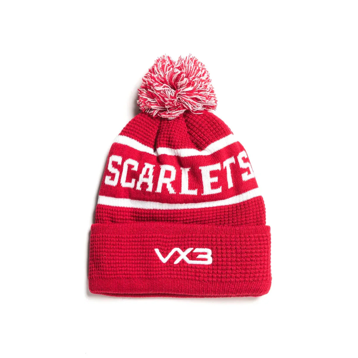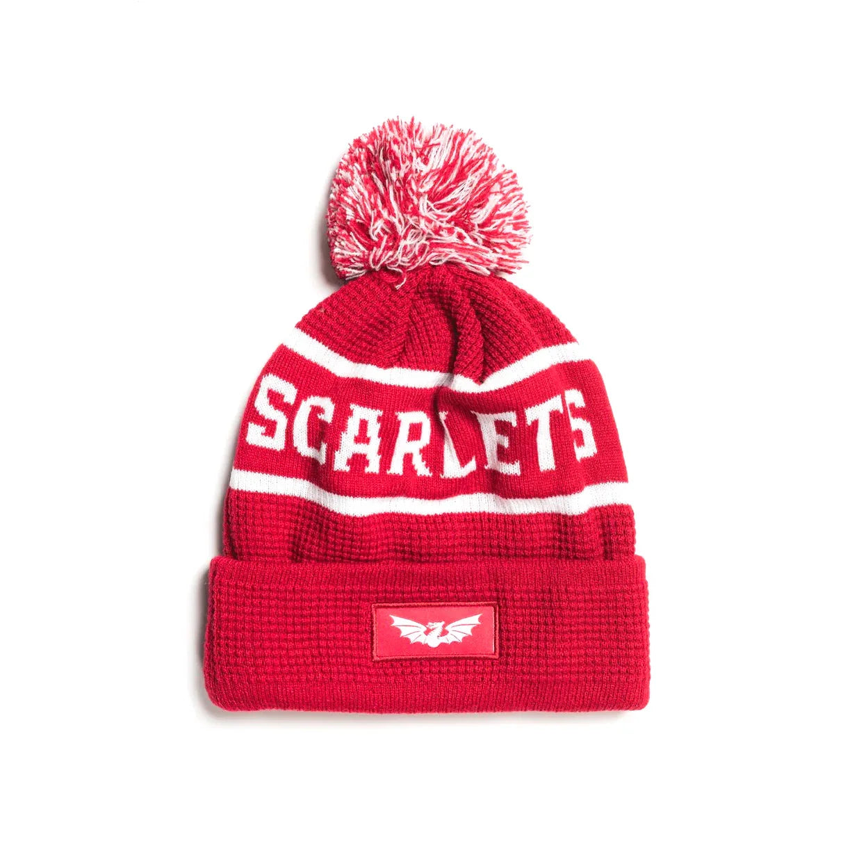 Keep warm while showing your support with this classic red Scarlets bobble hat. Featuring bold SCARLETS lettering and a chunky red and white pom-pom, it’s perfect for match days or cold training sessions. The turn-up cuff is finished with a stitched club crest patch front and centre.