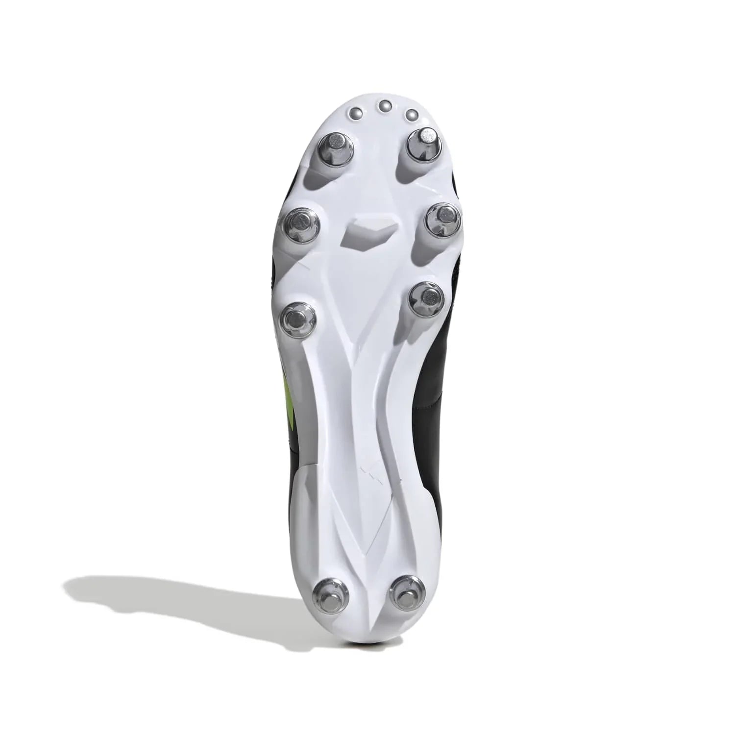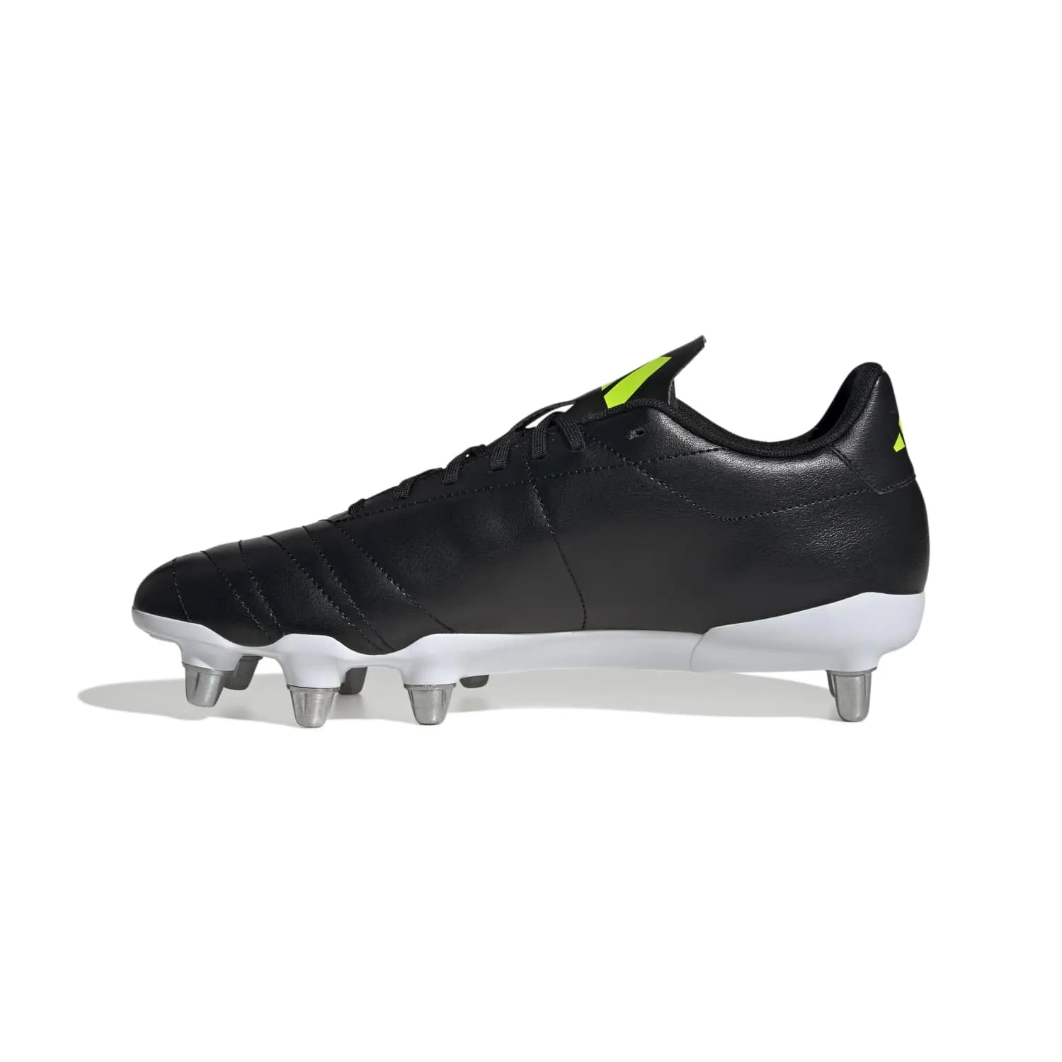 Designed for powerful forward play, the adidas Kakari Soft Ground Rugby Boots offer lightweight durability and secure traction. With a synthetic leather upper and eight-stud split outsole, they deliver speed, grip, and stability on soft ground. Made with at least 20% recycled materials, they also help reduce environmental impact.