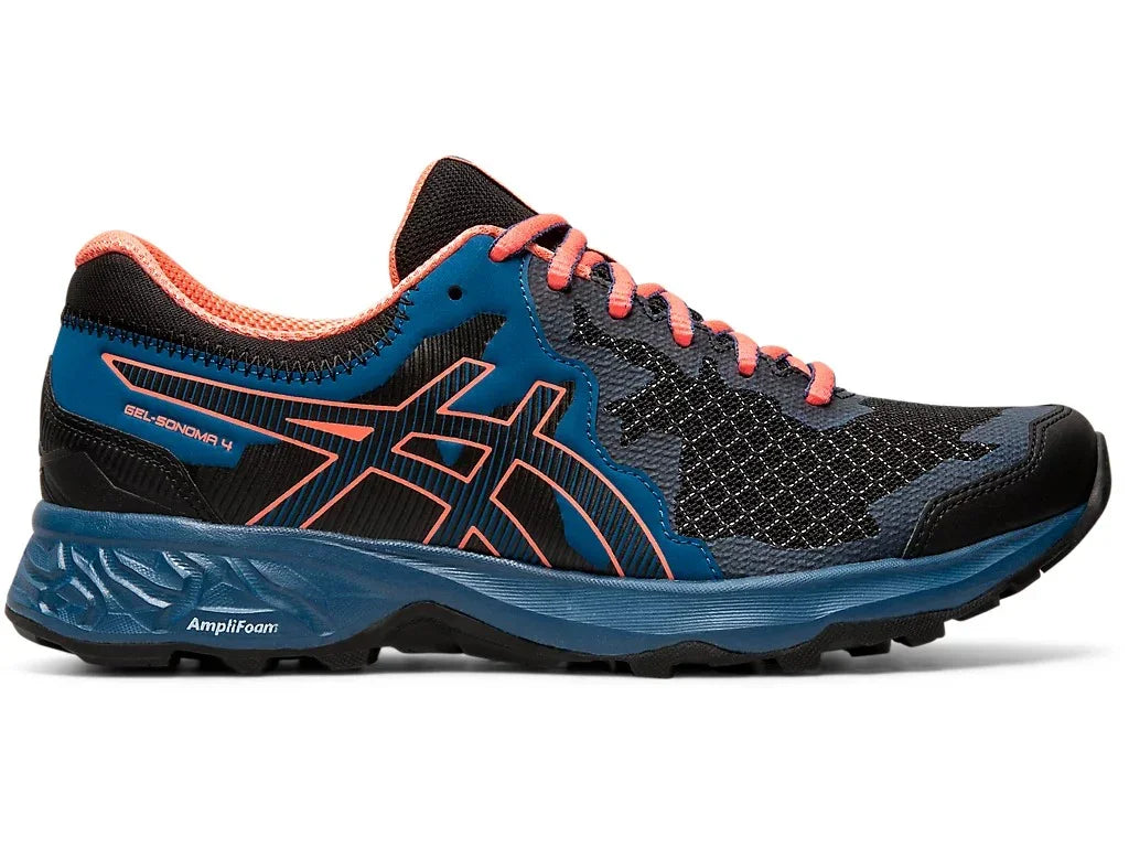 The ASICS GEL-SONOMA 4 women's trail running shoe is a hardworking shoe that's designed to take whatever the outdoors can throw at it. This is a female running shoe that's made for walking, hiking or trail running - hills, mountains and the natural landscape are what it loves best.