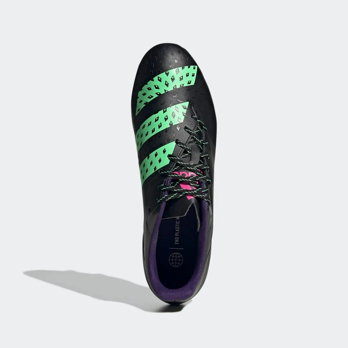 Perfect your kicks to control the game. The synthetic leather upper on these adidas Malice rugby boots includes asymmetrical lacing so there's more room on the instep for perfect ball contact. On the forefoot, a cluster of 3D-printed elements increase grip for better accuracy. Underneath, a lightweight outsole keeps you stable on soft ground. This product is made with recycled content as part of our ambition to end plastic waste. 20% of pieces used to make the upper are made with minimum 50% recycled content.